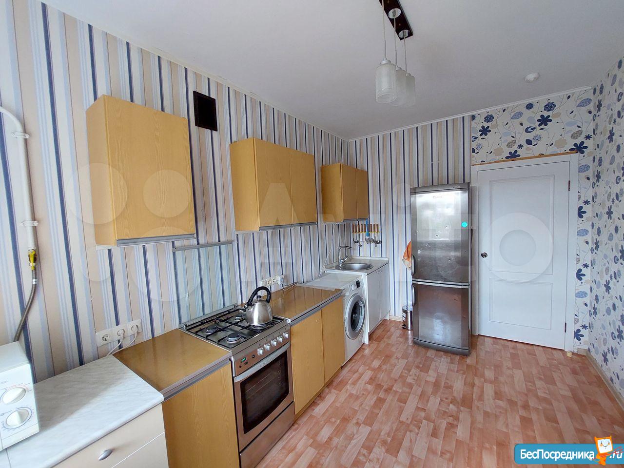 В квартире сделан современный ремонт, и она полностью готова для комфортного проживания. На кухне площадью 12 кв. м есть вся необходимая мебель и техника, включая холодильник и стиральную машину. В комнате также имеется мебель для вашего удобства. Санузел раздельный, оборудован ванной. Лоджия добавляет полезное пространство.
