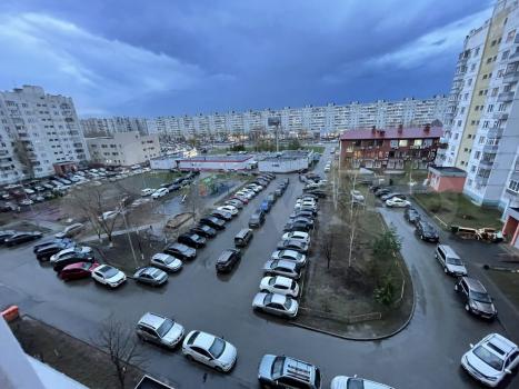 Отличное месторасположение, новый двор с хорошим асфальтом и большим количеством парковочных мест.