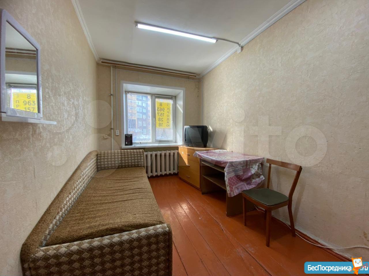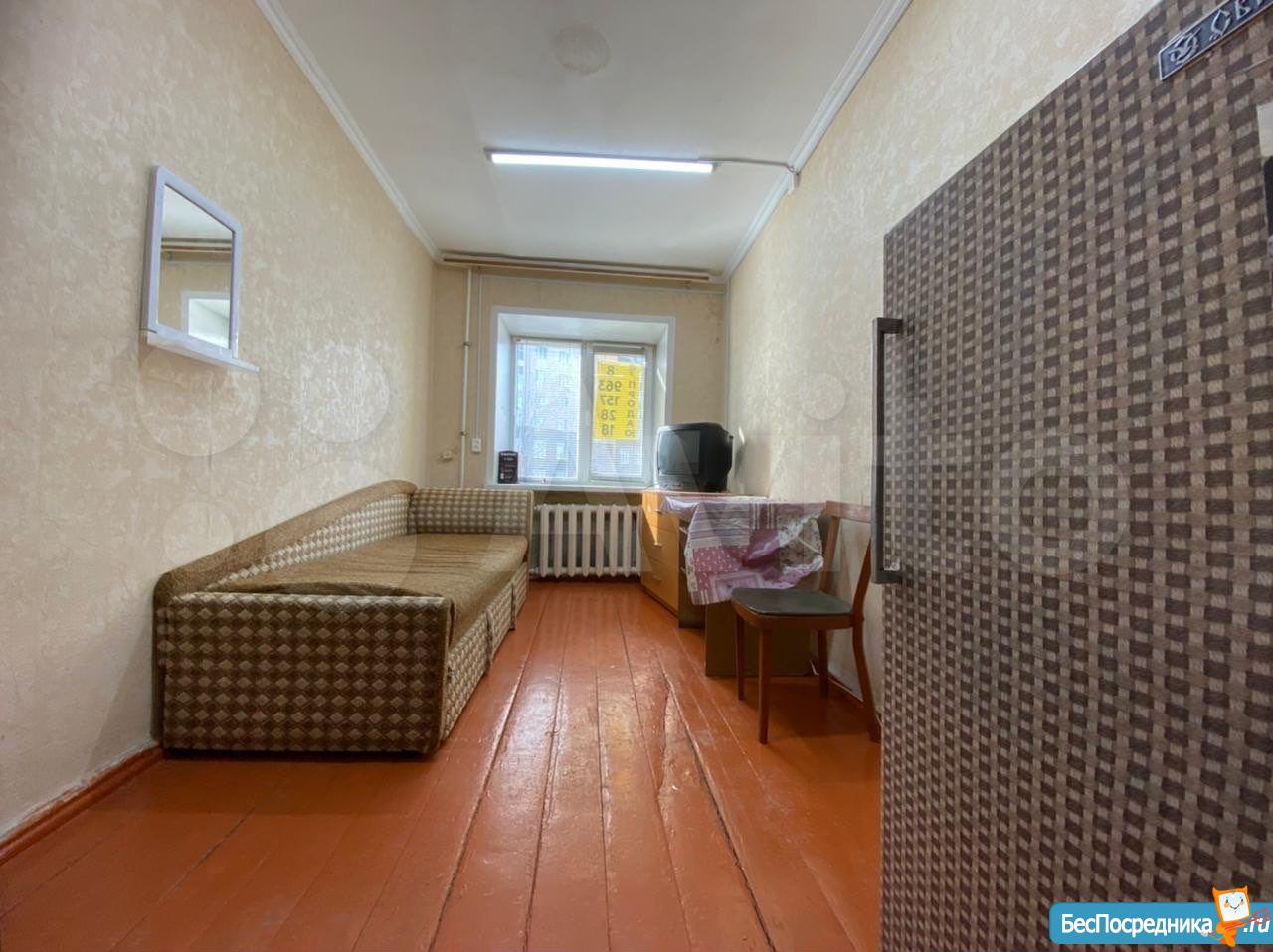 комната общей площадью 23,8 кв.м. + собственный балкон. Жилая 17,2 кв.м.
