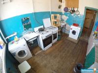Общая (кухня, газ.плиты, 2- раковины, умывальная- душевая кабинка, туалет. Стиральной машинки нет. Вода горячая, холодная.