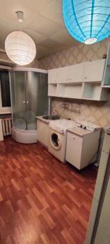 Комната после кап.ремонта, пластиковый стеклопакет, новая железная дверь, натяжной потолок, ламинат. Полностью мебелированная: диван(раскладывается), шкаф, стол, мебельный пенал, холодильник, стиральная машина, микроволновая печь, индивидуальная плита на 2 конфорки, шторы( фотографировала без них)