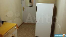 Соседей мало. Крайняя комната в коридоре. Солнечная сторона. Аккуратная комната с мебелью и техникой (телевизор, стиральная машина, холодильник, микроволновая печь).