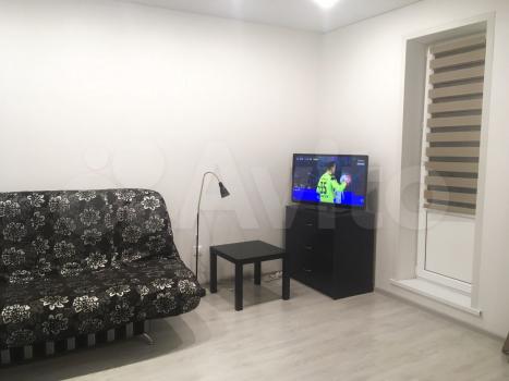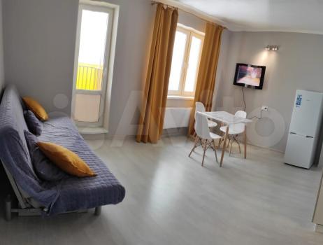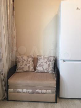 Студия с мебелью. Есть телевизор, микроволновка, холодильник, большой мягкий раскладной диван, стиральная машина, плита, вытяжка, духовка, большой шкаф для хранения вещей в квартире и на балконе.