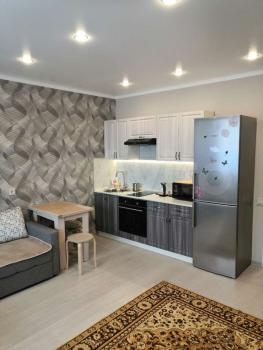 Сдаётся прекрасная уютная студия в районе РКБ в новом доме ЖК"Палитра". На длительный срок . В квартире новый евроремонт, имеется все необходимое для комфортного проживания : двухспальная кровать 140см, небольшой раскладной диван, комод, большой ЖК- телевизор,музыкальный центр, вся необходимая кухонная посуда и техника, ванна, стиральная машина, чистые полотенца и постельное белье. Остекленная лоджия с прекрасным видом.Огороженный двор без машин, имеется бесплатная парковка, во дворе дома детские и спортивные площадки, зона отдыха, Магазин Магнит. Удобный выезд в сторону аэропорта.