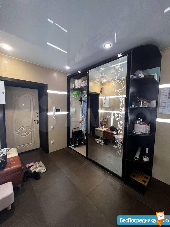 Два балкона (выход из кухни и зала),панорамное окно в комнате, огромный шкаф купе в прихожей.