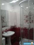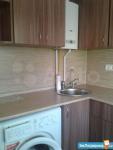 Кухня компактная, площадью 5 м², оборудована газовой плитой и холодильником. Санузел совмещённый, оформлен плиткой.