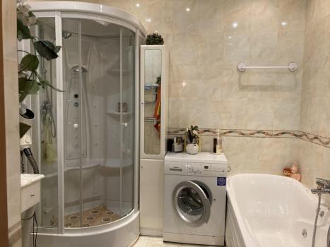 В квартире есть все необходимое для комфортного проживания. Просторная кухня с мебелью и техникой, включая 2 холодильника и бытовую технику, позволит вам готовить с удовольствием. В комнатах также есть дорогая мебель, 2 кондиционера и телевизоры, поэтому можно сразу заселяться и жить без лишних хлопот. Ванная комната оборудована как ванной, так и душевой кабиной, а также стиральной машиной. В квартире два санузла, один из которых совмещенный, а другой отдельный, что очень удобно для семьи.