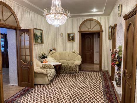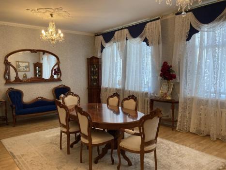 Общая площадь квартиры составляет 129 квадратных метров, жилая площадь — 70 квадратных метров, а кухня — 15 квадратных метров. Квартира находится на 3 этаже 6-этажного элитного кирпичного дома, построенного в 1996 году. В квартире есть все необходимое для комфортного проживания. Просторная кухня с мебелью и техникой, включая 2 холодильника и бытовую технику, позволит вам готовить с удовольствием. В комнатах также установлена дорогая мебель, 2 кондиционера и телевизоры, поэтому можно сразу заселяться и жить без лишних хлопот. Ванная комната оборудована как ванной джакузи, так и душевой кабиной, а также стиральной машиной. В квартире два санузла, один из которых совмещенный, а другой отдельный, что очень удобно для семьи.
