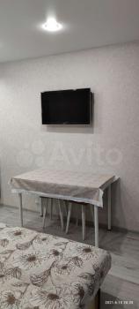 B комнате есть всё необходимое для комфортного проживания, полноценная электроплита , современный телевизор , микроволновая печь, полноценная ванна , розетки у кровати и в санузле под зеркалом , стиральная машина , холодильник , стоит комод и шкаф .