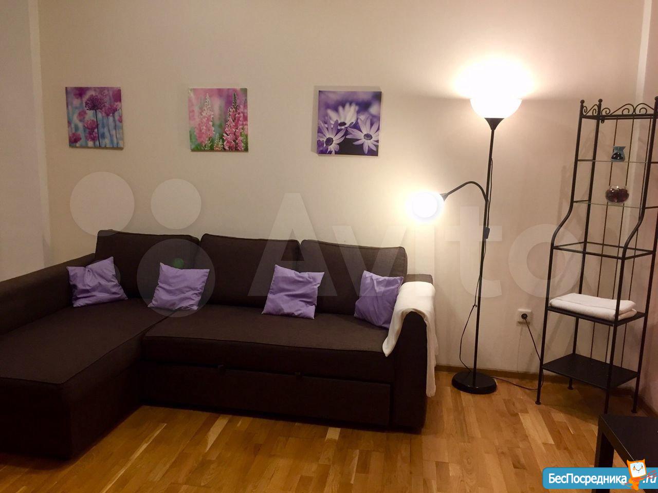 Сдам светлую, уютную однокомнатную квартиру в престижном районе на длительный срок, со всеми удобствами и мебелью, стиральная машина, кондиционер, телевизор, духовой шкаф, микроволновка, вместительный шкаф-купе, большая ванна.