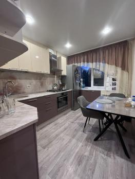 Квартира расположена на 7 этаже кирпичного дома, построенного в 1977 году. В квартире выполнен свежий евро ремонт, комнаты изолированные. В гостиной установлен кондиционер и телевизор, а также имеется удобный диван и шкафы для хранения вещей.