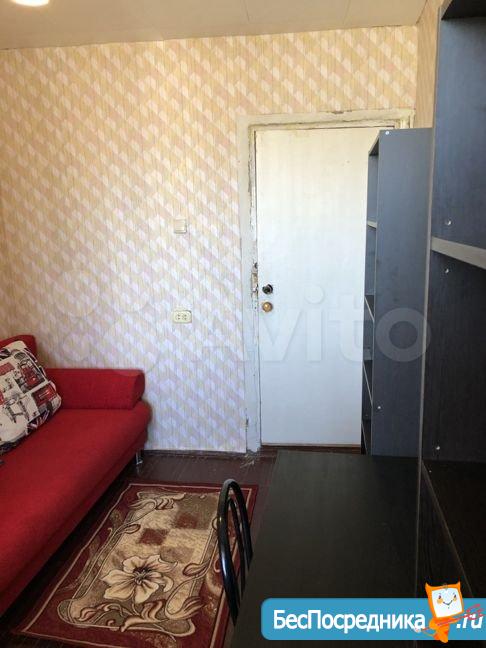 Сдается комната в 5-комнатной коммунальной квартире. В комнате есть диван, шкаф, стол, стул. Имеется застекленный балкон. Бытовой техники нет. В шаговой доступности магазины, дет площадка, торговый комплекс, остановка общественного транспорта.