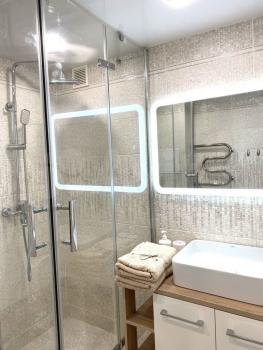 Светлая, эргономичная, есть все для комфортного проживания: интернет, кондиционер, 2х спальная кровать, диван раскладной, гардеробная, телевизор,стиральная машина.