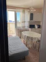 Квартира находится на 3м этаже, есть все необходимое для проживания. Кухонный гарнитур, телевизор, холодильник, стиральная машина, электрический чайник, плита с духовкой, необходимая посуда, стул, стулья, диван раскладной.