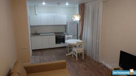 Квартира полностью мебелированна , дорогая и качественная техника. В квартире большая, комфортная кухня - гостиная с раскладным диваном ,встроенным холодильником и всей необходимой техникой . Большая, светлая детская, уютная спальня, вместительная гардеробная и большой квадратный балкон .