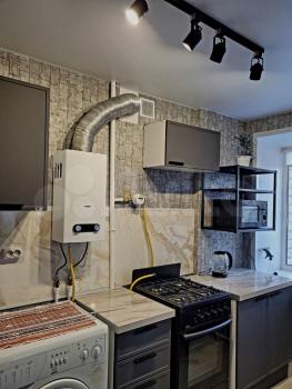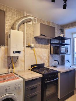 Закрытая приквартирная площадка. В квартире горячая вода от газовой колонки.