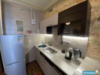? Полнocтью обopудованная кухня: чaйник, вaрoчная панель, духoвoй шкаф, xoлодильник , микроволновая печь и всё необходимое для готовки.