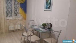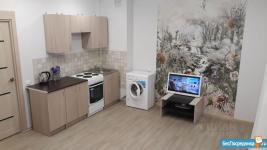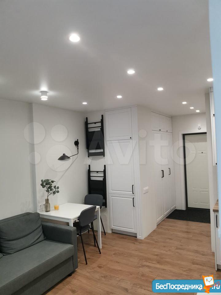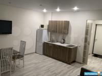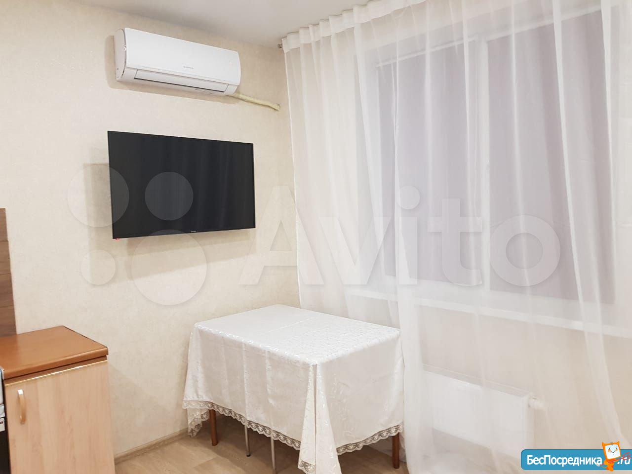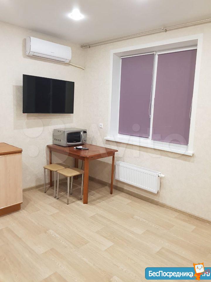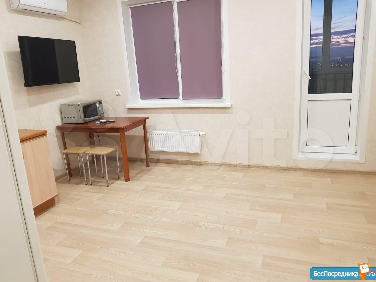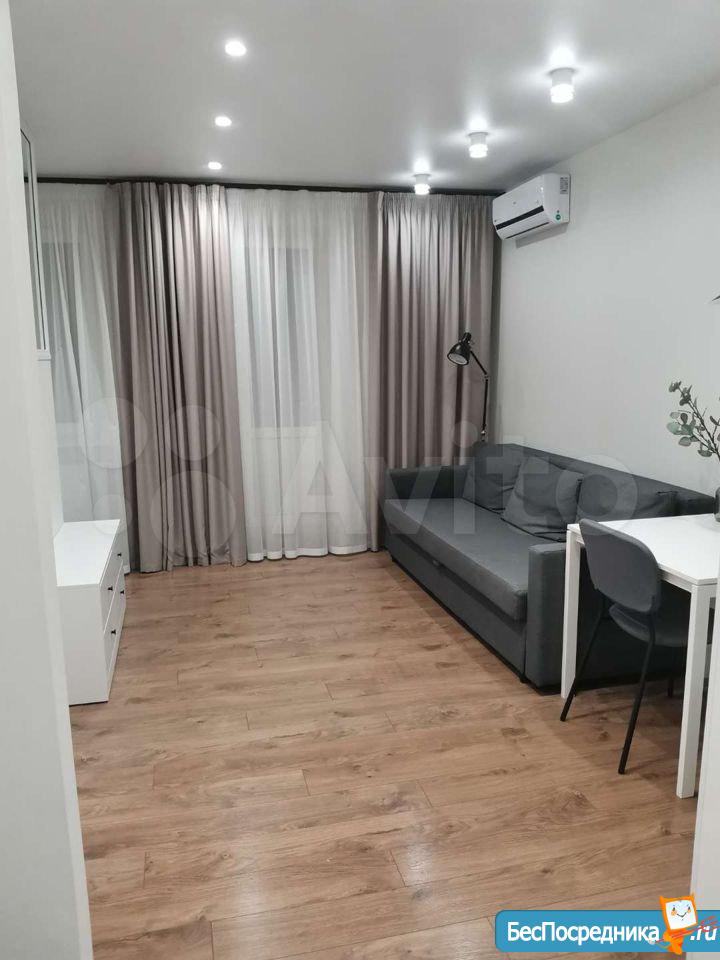 Сдаю квартиру-студию в районе РКБ на длительный срок в новом доме. Только что сделан ремонт. Имеется кухонный гарнитур, кондиционер, плита микроволновая печь, 2-х местный диван, балкон. Коммунальные услуги не включены. Санузел: ванна туалет, стиральная машина. В прихожей вместителтный шкаф-купе. Шикарный вид из окна- 21 этаж. В доме 4 лифта. Рядом с домом конечная автобусная остановка, проблем с транспортом не возникнет.
