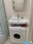 - Санузел полностью в кафеле, ванна, унитаз, стиральная машина, сушка для белья.