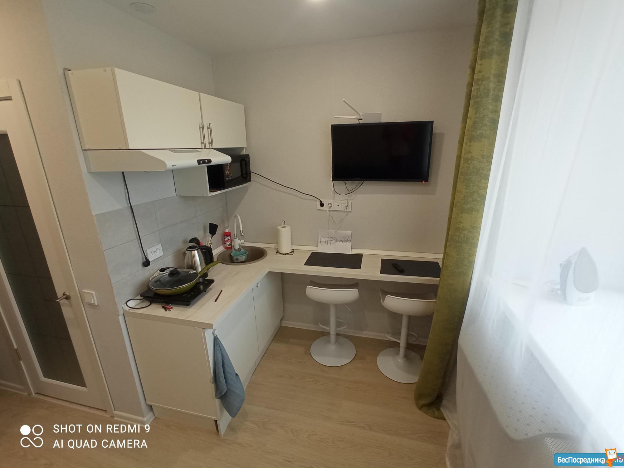 Сдам гостинку-студию после ремонта, все для проживания имеется, бытовая техника, мебель, отдельный санузел, оплата 20000+к/у, интернет, залог 20000