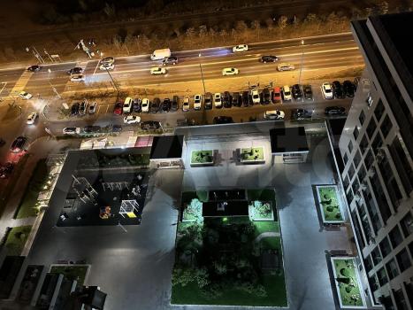 Подземный паркинг обеспечивает комфортное размещение автомобилей. На стилобате находится детская площадка, во дворе летом доме работают рестораны и салоны красоты, что обеспечивает удобство и высокий уровень сервиса для жильцов.