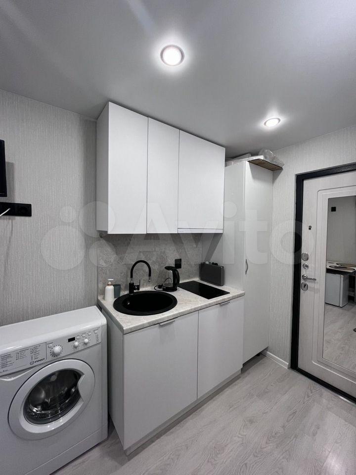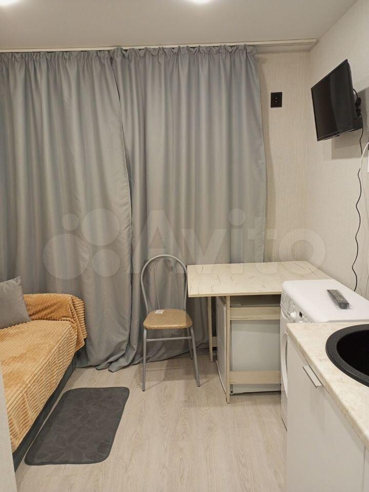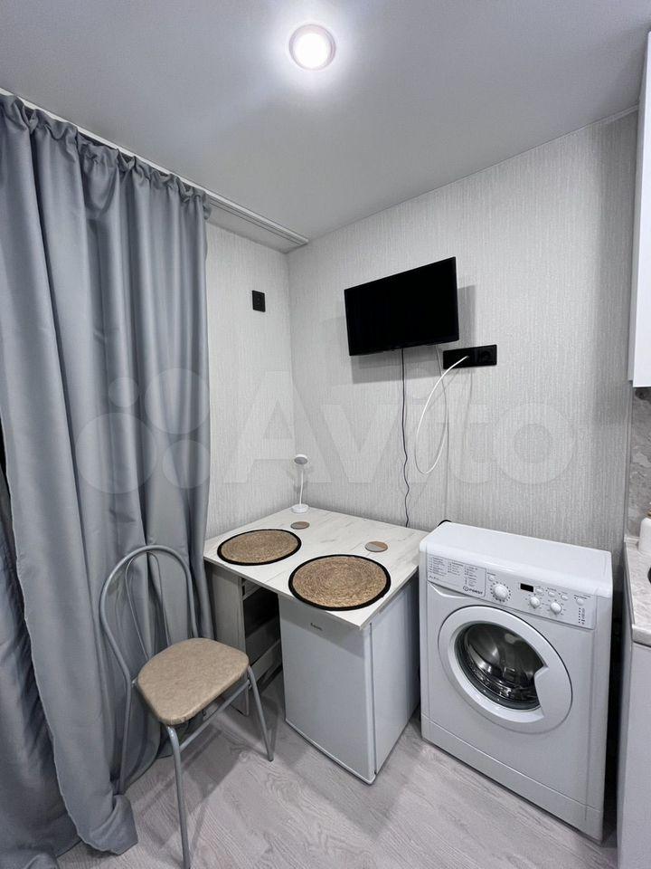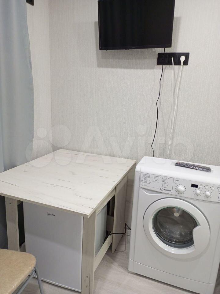 В квартире сделан косметический ремонт, что создаёт приятную атмосферу для проживания. В распоряжении жильцов есть необходимая техника: холодильник и стиральная машина. Планировка студии позволяет рационально использовать пространство, создавая комфортные условия для жизни.