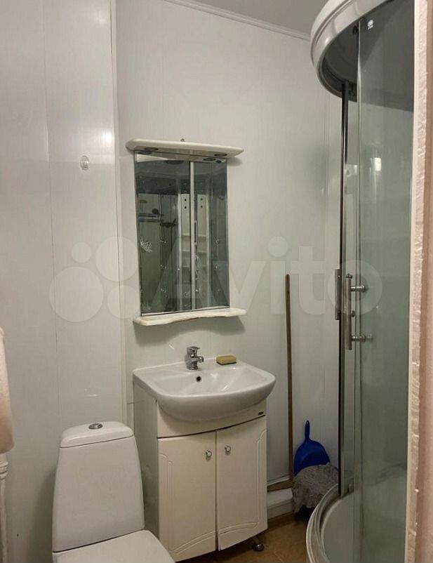 Санузел совмещенный, оснащен современной стиральной машиной. Из окон открывается вид на тихий двор, где предусмотрена открытая парковка.