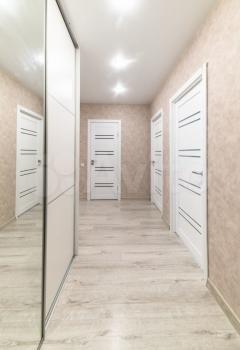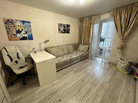 В квартире выполнен качественный ремонт: кафель и ламинат на полу, санузел раздельный в дорогой кафельной плитке, итальянские обои. Имеется просторная застекленная лоджия с выходом из кухонной зоны.