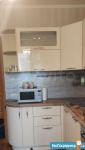 Кухня 8,5 кв.м. с холодильником, микроволновой печью, чайником. Кухонный гарнитур, стол и мягкий уголок.