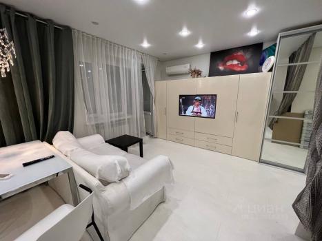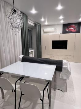 В квартире есть всё необходимое для комфортного проживания. Просторная зона студии обставлена мебелью, включая удобный диван и функциональный гардероб. На кухне предусмотрена вся необходимая мебель и техника, в том числе холодильник, посудомоечная машина, микроволновка и чайник. Ванная комната оснащена ванной и современными сантехническими приборами, также имеется стиральная машина. Для дополнительного комфорта установлены кондиционер и телевизор, также подключен интернет.