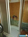 Плита, холодильник, стиральная машинка, душевая кабинка, застекленный балкон.