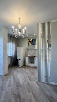 Сдаю квартиру с качественным ремонтом. Планировка полу-студийная, кухня объединена с гостиной +спальня. Кондиционеры, стиральная машина, раскладывающий диван, в кухни встроенная техника. В отдельной комнате двухспальная кровать. Ванная комната с душевой кабиной, стиральная машина имеется. Балкон с частичным видом на город. Уютная и чистая квартира.