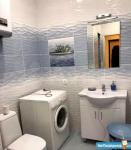 Ванная и туалет разделены. В них выложена по дизайн-проекту матовая дорогая плитка в спокойных тонах.
