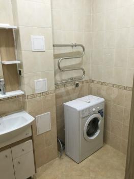 В квартире установлена вся необходимая техника: плита, духовка, вытяжка, посудомоечная машина, водонагреватель, стиральная машина. Есть также телевизор, микроволновка, электрический чайник и утюг.