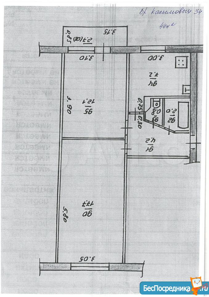 Сдается двухкомнатная квартира 44 кв. м "распашонка"