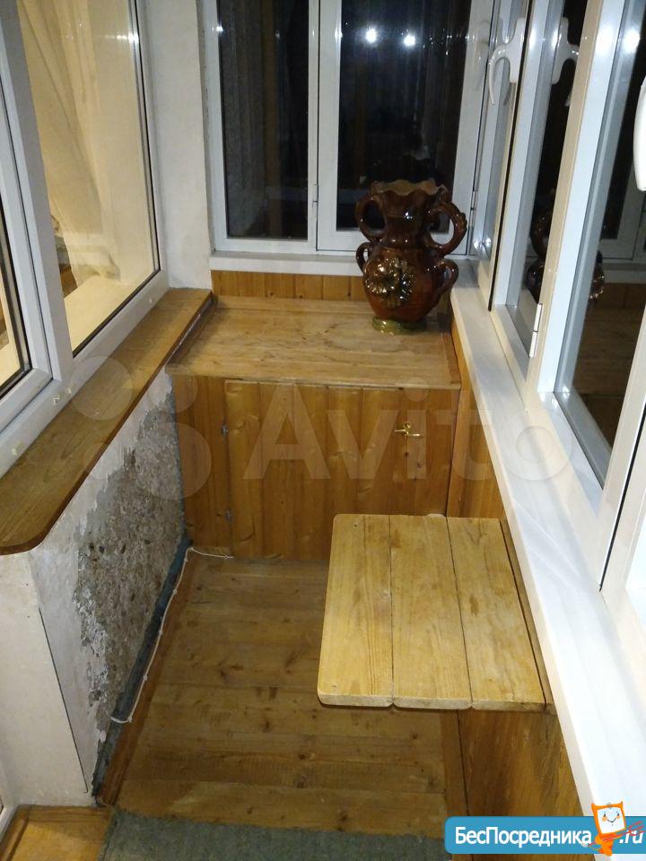Балкон обшит и застеклен.