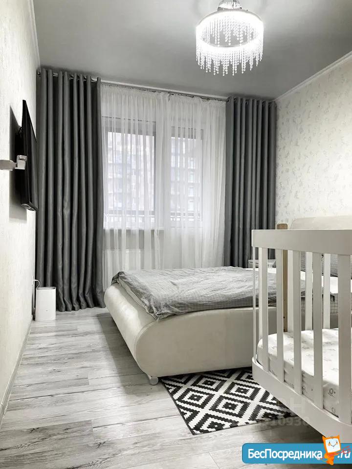 *Спальня для взрослых отдельно с выходом на лоджию и видом на проспект Победы, меблированная с большими шкафами.