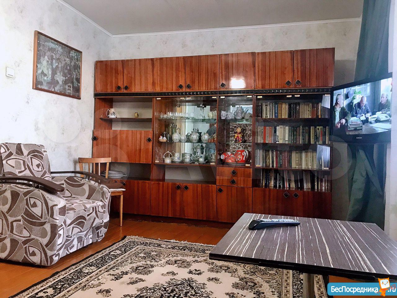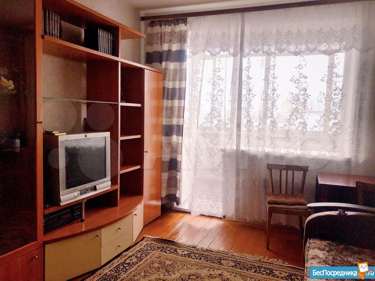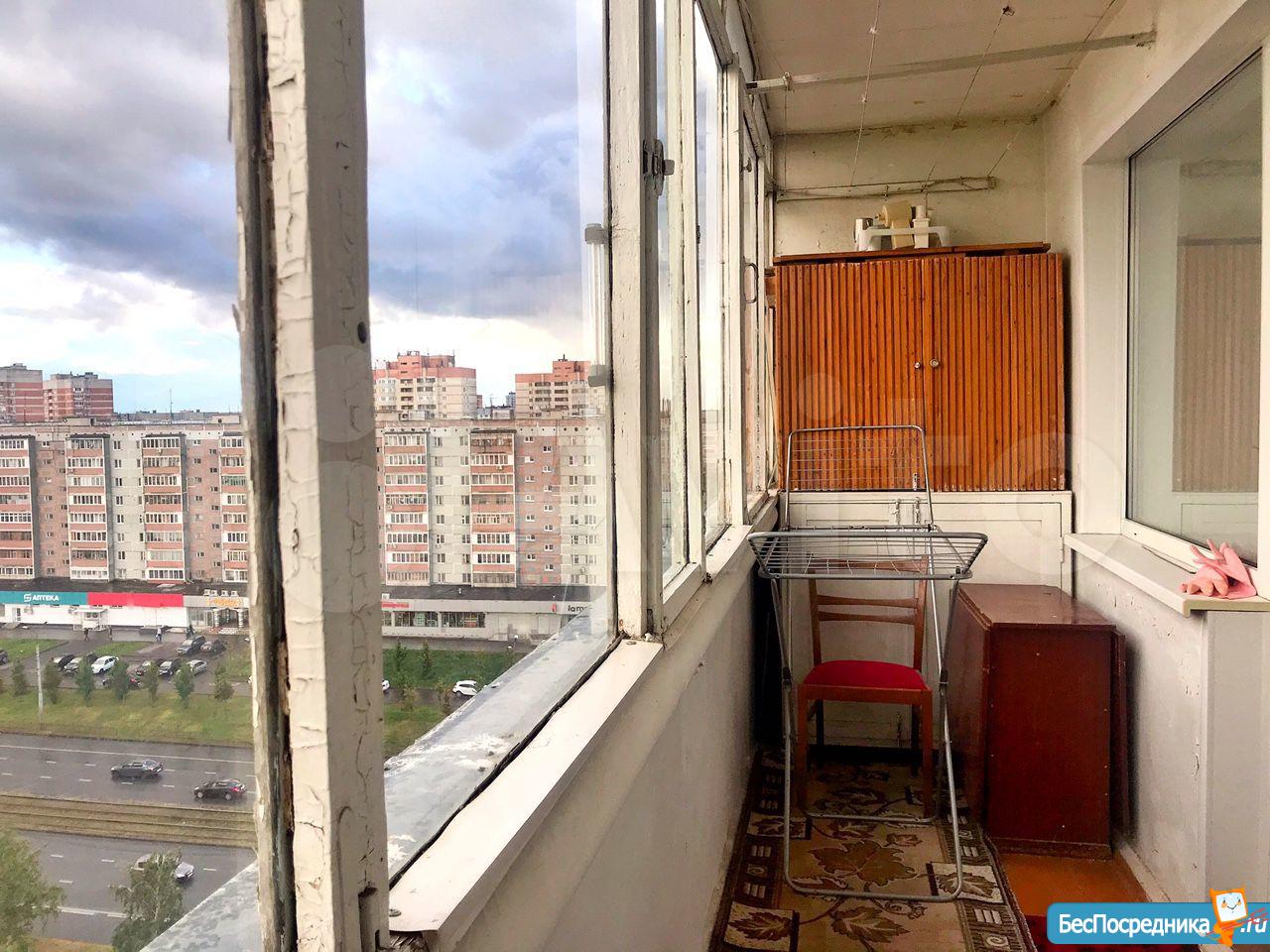 Большая лоджия, свежий косметический ремонт, двуспальная кровать, диван, шкаф-купе, горка, мебель в прихожей.