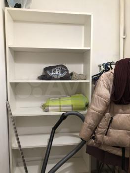 Прихожая: шкаф для одежды с зеркалом, гардеробная-темнушка со шкафом для одежды и напольной вешалкой.