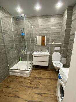 Санузлы раздельные, что добавляет удобства. Парковка открытая, расположена за шлагбаумом во дворе.