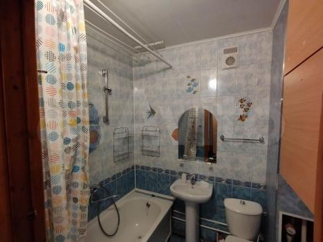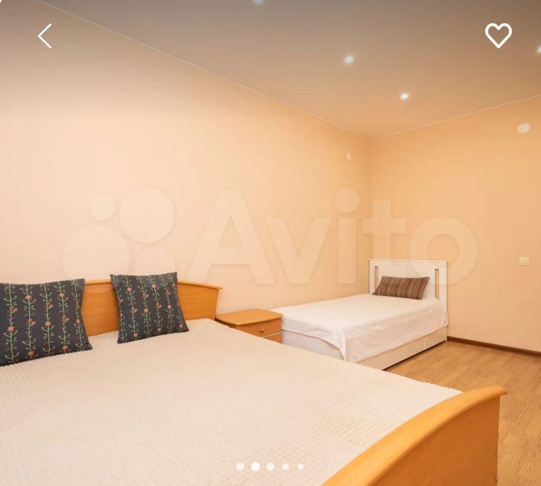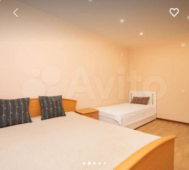 Большая двухкомнатная с тремя кроватями, диваном и двумя санузлами первый: туалет-ванная и отдельно ещё один санузел.
