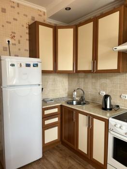 В квартире есть все необходимое для комфортного проживания. Выполнен современный евроремонт. Комната и кухня полностью меблированы. Для вашего удобства в квартире установлена современная техника: кондиционер, холодильник, телевизор и стиральная машина. Санузел совмещенный, в нем есть большая угловая ванна и душ. Окна выходят на улицу, поэтому в квартире всегда светло. Также имеется лоджия с прекрасным видом.