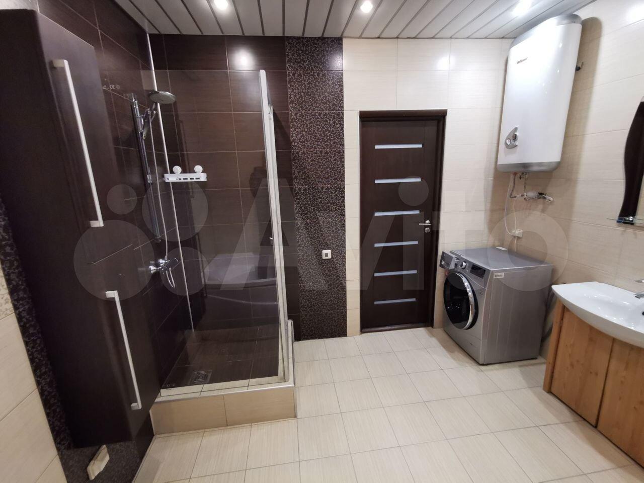 В Ванной комнате Стиральная машина LG 8 кг, Водонагреватель 80 л., угловая ванная, Душ, Унитаз подвесной.