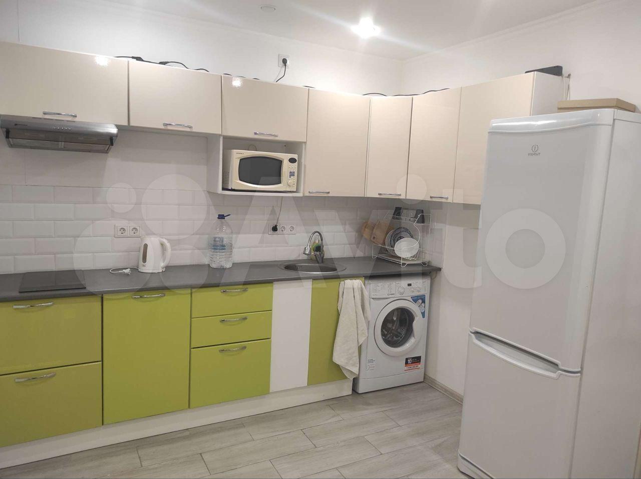 В квартире имеется все необходимое для проживания: кровать, диван-кровать, стиральная машина, электрический чайник, холодильник, духовой шкаф, варочная панель на четыре конфорки, вытяжка.