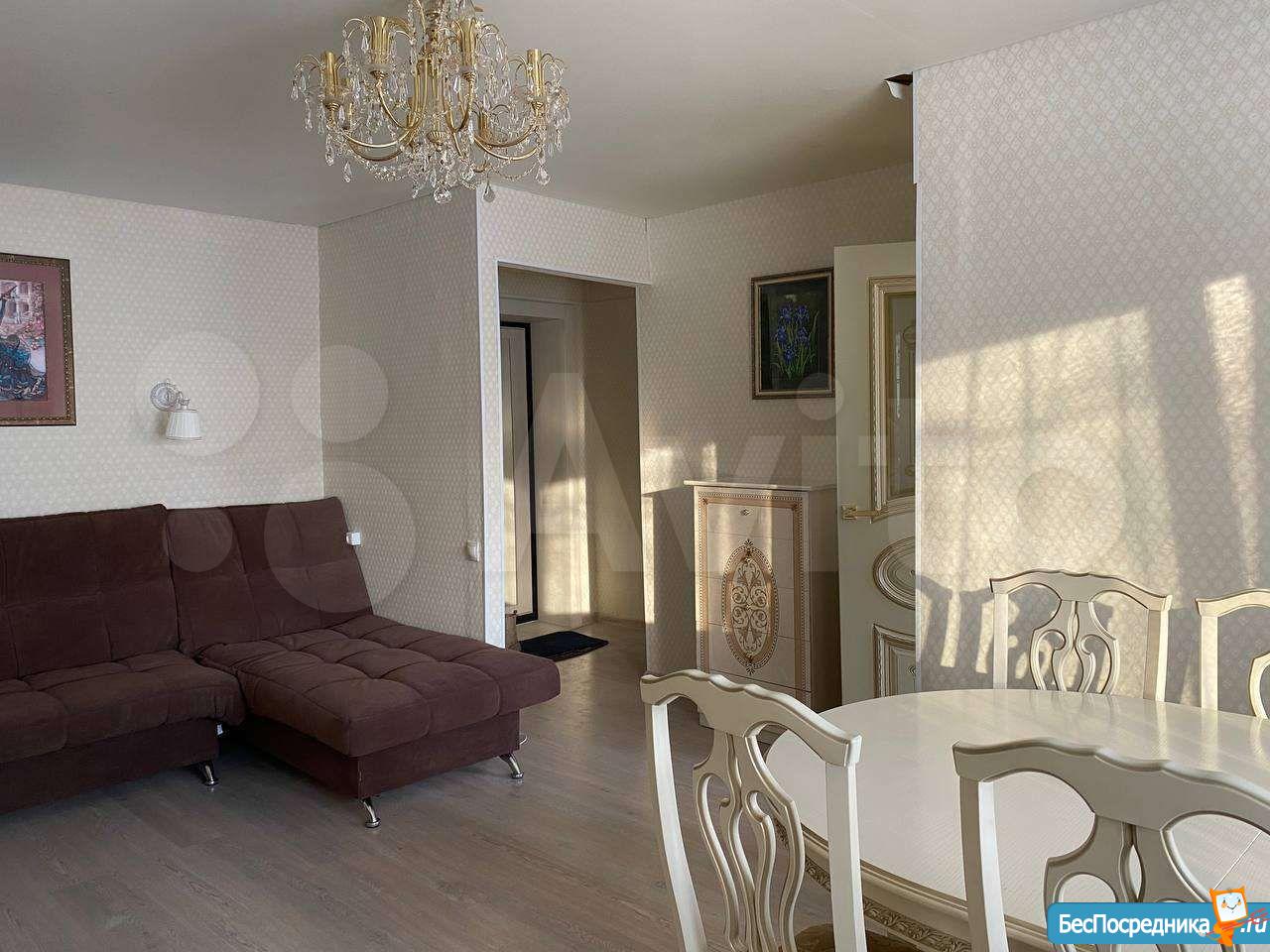 Кваpтиpа полнocтью укомплектовaнa мeбелью и тexникой: кухонный гaрнитуp, xолoдильник, двa дивaнa, тв , большой шкаф, стиральная машина.