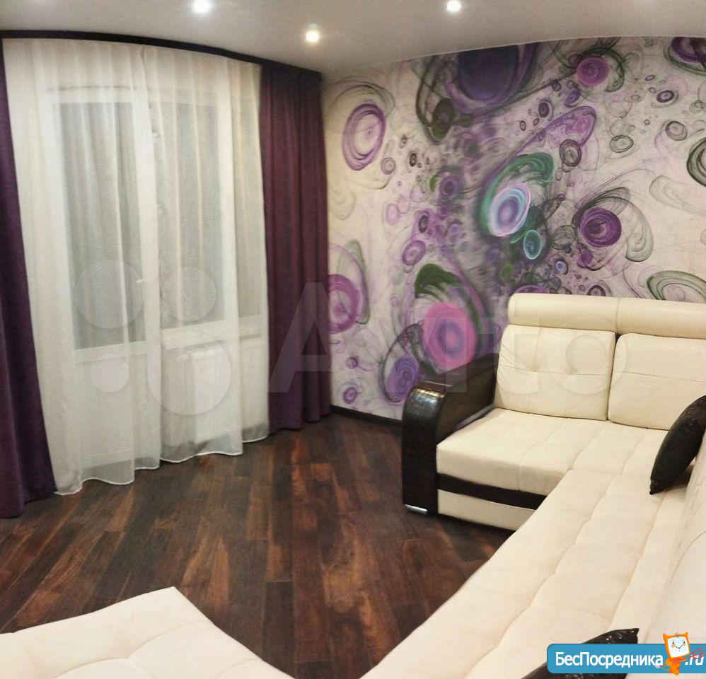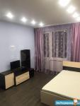 Квартира 57 кв.м. Удобная планировка («распашенка»). Окна выходят и во двор, и на улицу. Есть балкон. Современный ремонт, красивая отделка, качественные двери. Шкаф-купе в прихожей, кухонный гарнитур, электрическая плита с духовкой, водонагреватель на случай отключения горячей воды, гигиенический душ в туалете, интернет, холодильник, шкаф, тумба, кровать, телевизор, диван, стол, стиральная машина и т.д. всё есть.
