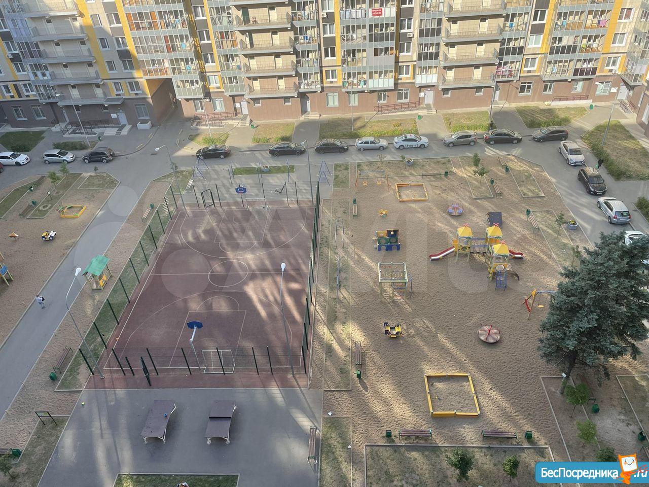Двор современный. Дом образует “коробку”, где комфортно проводить время. Растут красивые деревья, есть детская зона, скамейки, баскетбольная и футбольная площадка, столы для настольного тенниса. Есть бесплатная парковка с внешних сторон дома, а также платная парковка в шаговой доступности.