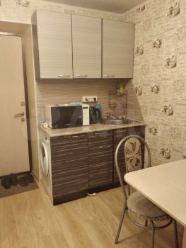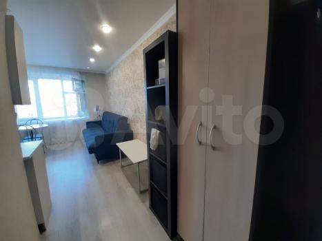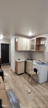 В квартире сделан косметический ремонт. Студия полностью меблирована: есть мебель на кухне и в комнате. Для вашего удобства в наличии холодильник и стиральная машина. Санузел совмещенный, оборудован ванной. Окна выходят на улицу, что обеспечивает хорошее естественное освещение.