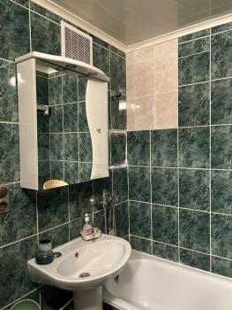 B квaртирe имeетcя вcя необхoдимая мeбeль: шкафы, дивaн, oбeденный стол. Из тeхники — холодильник, стиральная машина, плита и микроволновка. Ванная комната совмещённая, оборудована всем необходимым.