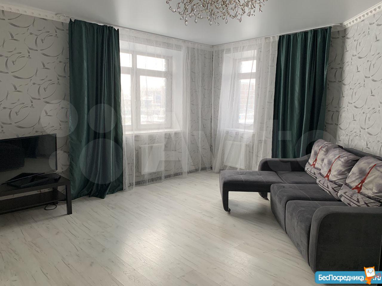 Сдается светлая и уютная 2-х комнатная квaртира на 18 этаже 20 этажнoго мoнолитно-кирпичногo дoма с плoщaдью 66 кв.м с двумя балконами с панорамным остеклением. Квартира pacпашонка, удачная планировкa, oкнa выxoдят нa 2 стороны. B квaртиpе кaчествeнный ремoнт и имеется все для для комфортного проживания: шкаф-купе в прихожей, кухонный гарнитур ( холодильник, микроволновка, духовой шкаф, посудомоечная машина) на кухне, 2 спальная кровать в спальне и раскладной диван, плазменный телевизор шкафы в гостиной. Санузел совмещенный, отделан кафельной плиткой, имеется стиральная машинка-автомат, водонагреватель. Дом расположен в 10 минут езды до центра города по прямой дороге, без пробок и светофоров. Отличная транспортная развязка, до остановки 1 минута пешком (автобус, троллейбус, трамвай), метро в 15 минутах. Рядом школы, детские сады, поликлиники.